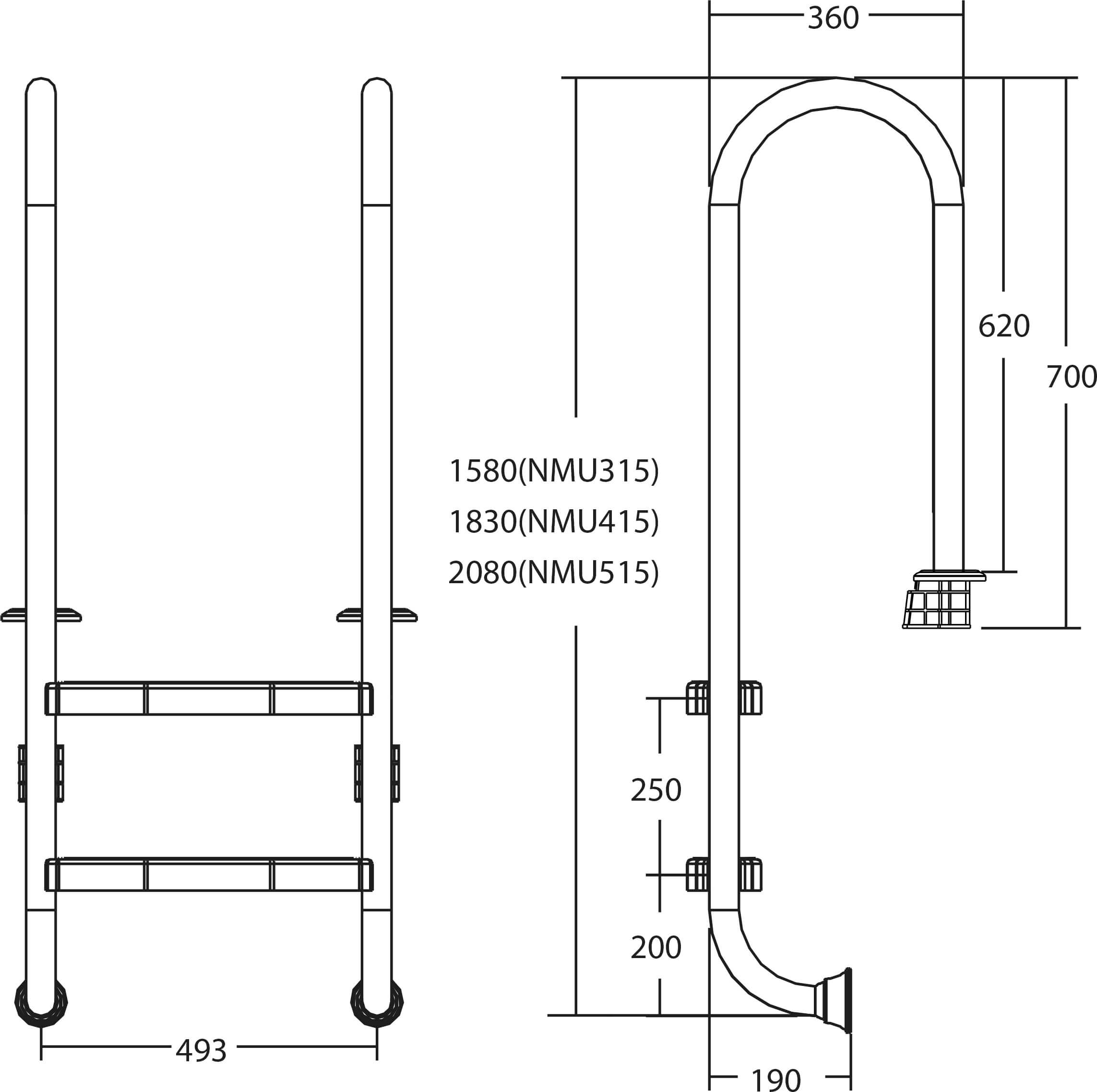 Flotide poolstige (lille model) er fastgjort 170 mm bag poolkanten. Alle stiger inkluderer en skridsikker pude.