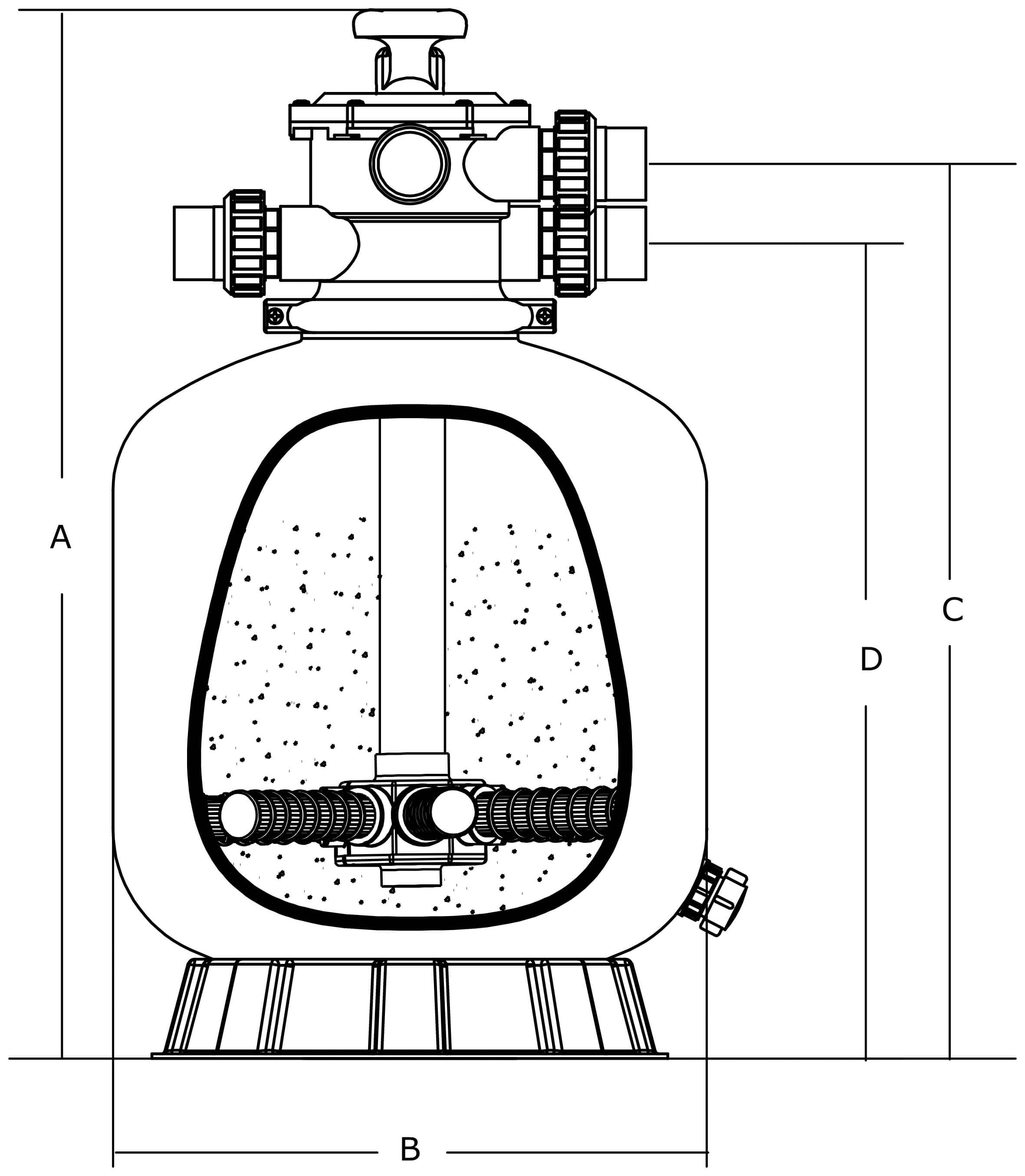 Flotide Sandfilter PE/Polyester glasfaserverstärkt 50 mm / 1 1/2" Metrisch/Imperial Klebemuffe 2,5bar Grau Typ V500