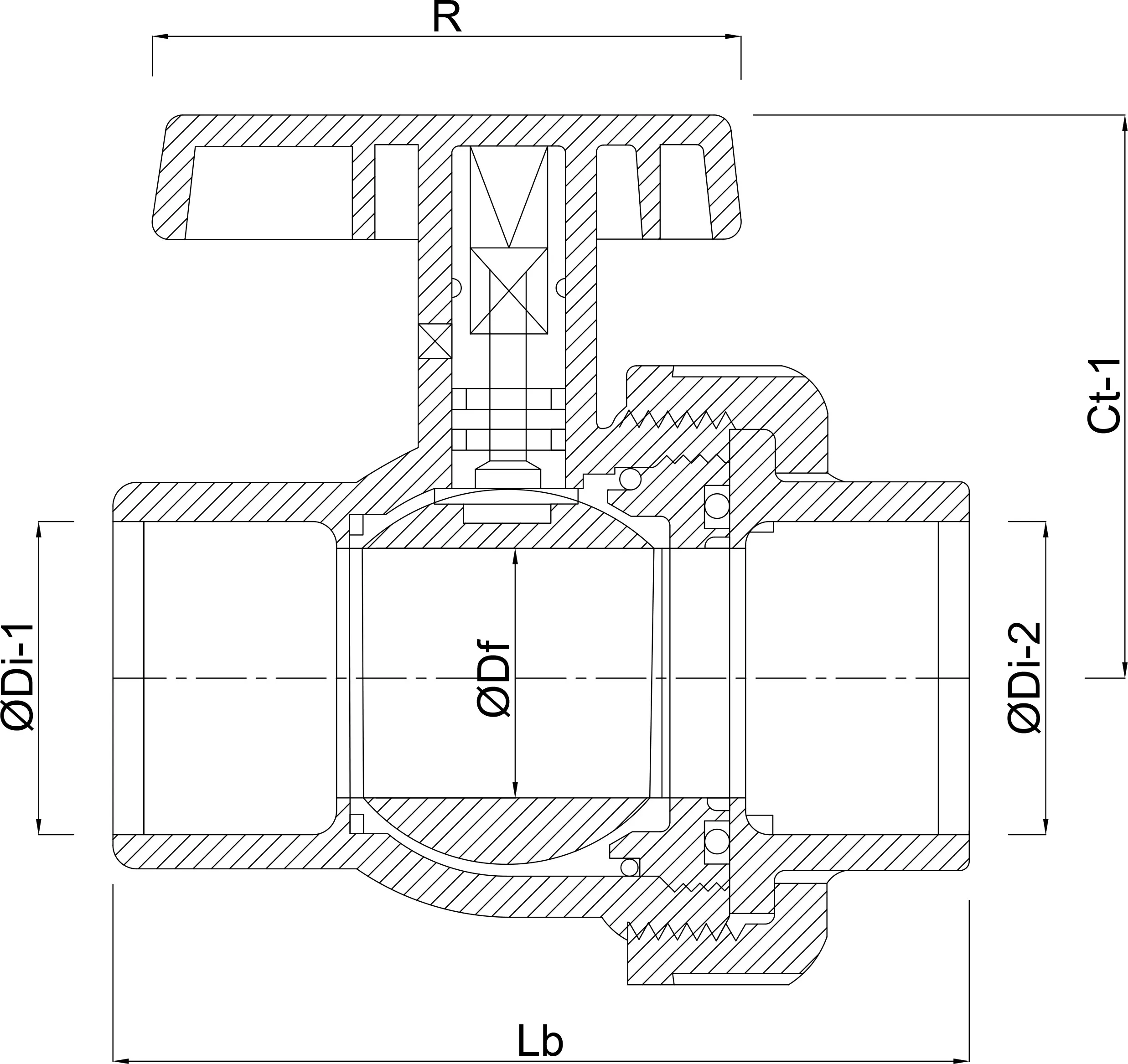 Der Kugelhahn des Typs EIL von VDL, aus PVC-U gefertigt, mit Spülsicherung und einem Anschluss, verwendet Klebemuffen zur Verbindung und ist für einen maximalen Druck von 16 Bar ausgelegt. Dichtungen: Mit Teflon gefülltes PE/EPDM. Das Ventil ist in vielen Größen erhältlich.