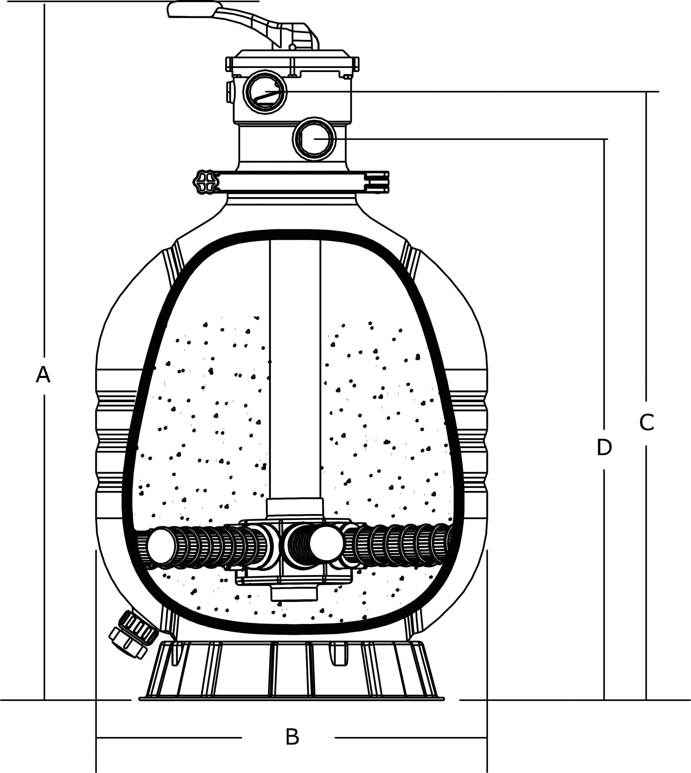 Das 6-Wegeventil erlaubt es, die einzelnen Filterstellungen mit einer einfachen Hebelanktion zu verändern