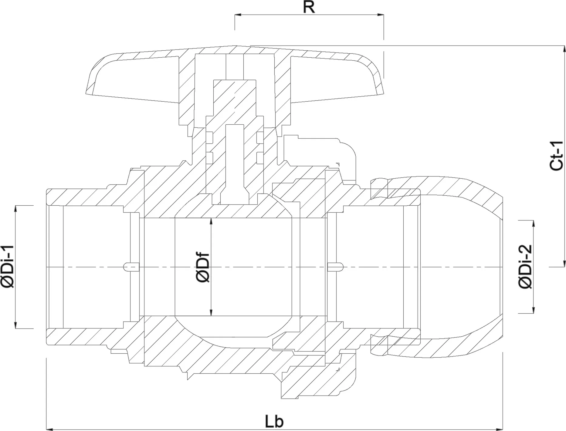 Profec Kugelhahn PP 63 mm x 2" Klemm x Innengewinde 10bar Schwarz Typ Safe 501